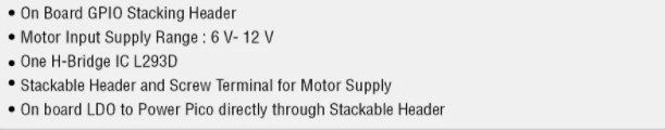 H-bridge IC L293D with a motor input supply range of 6 V to 12 V. It is